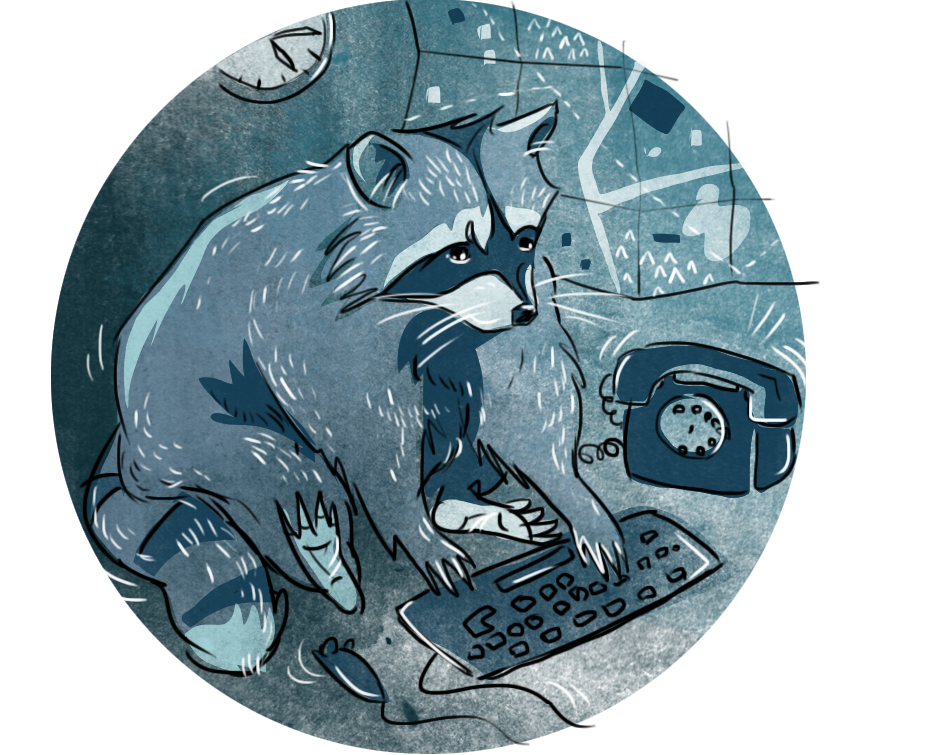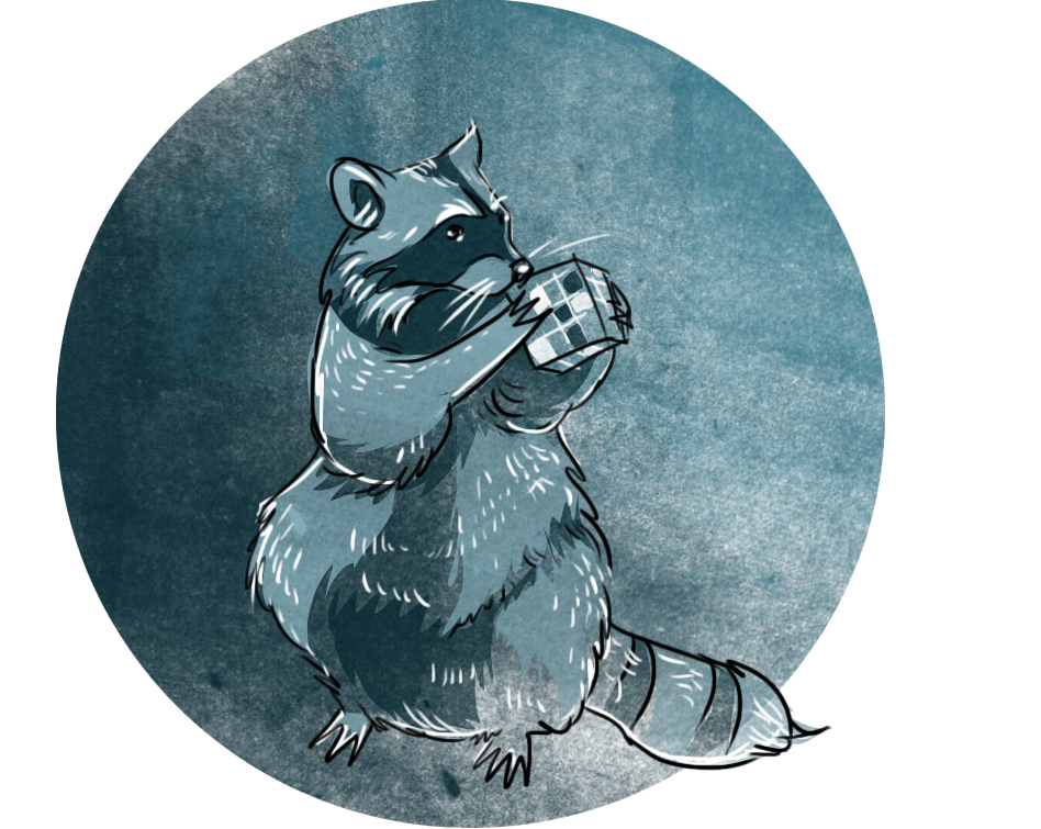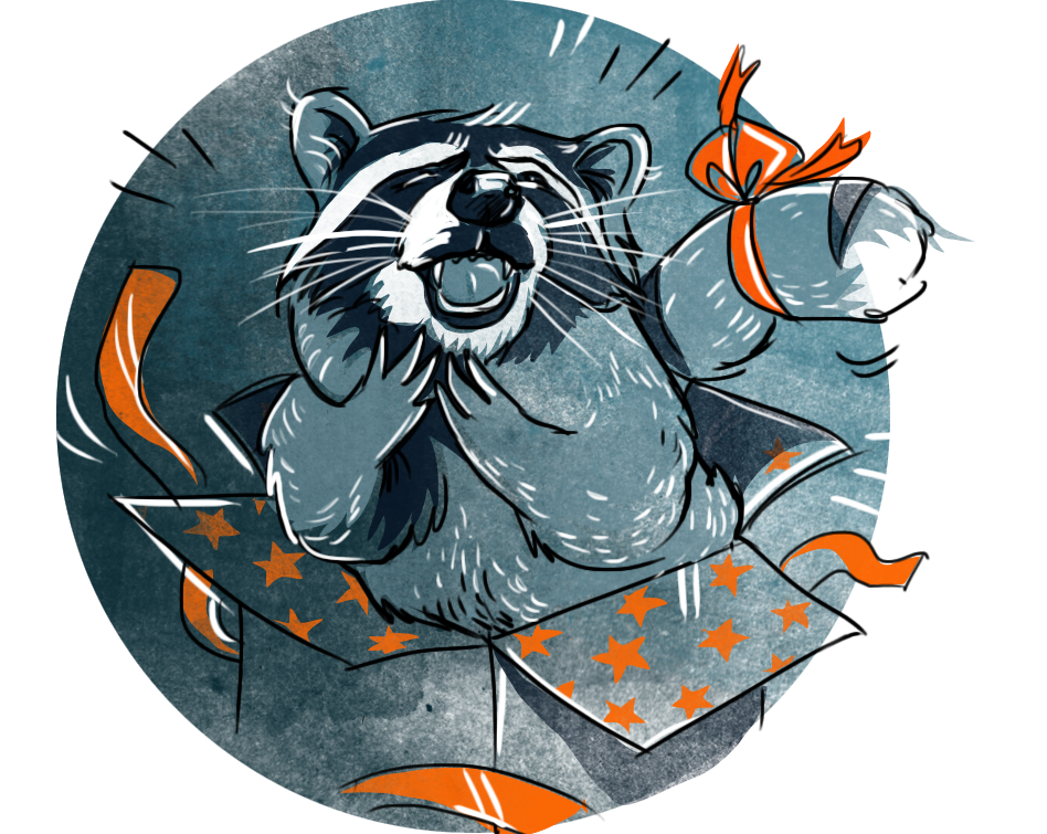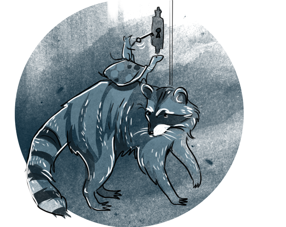 illustration for Quest For Best escape-game company. Raccoon named Rakun.