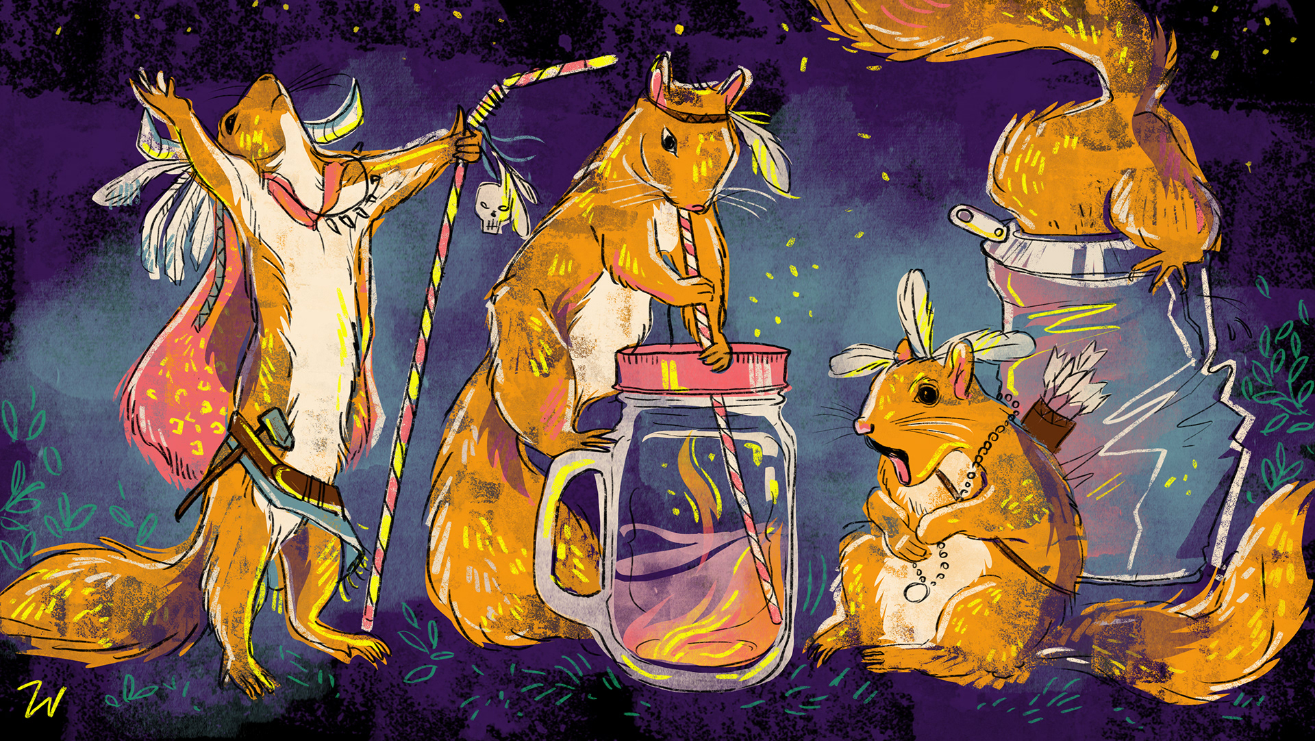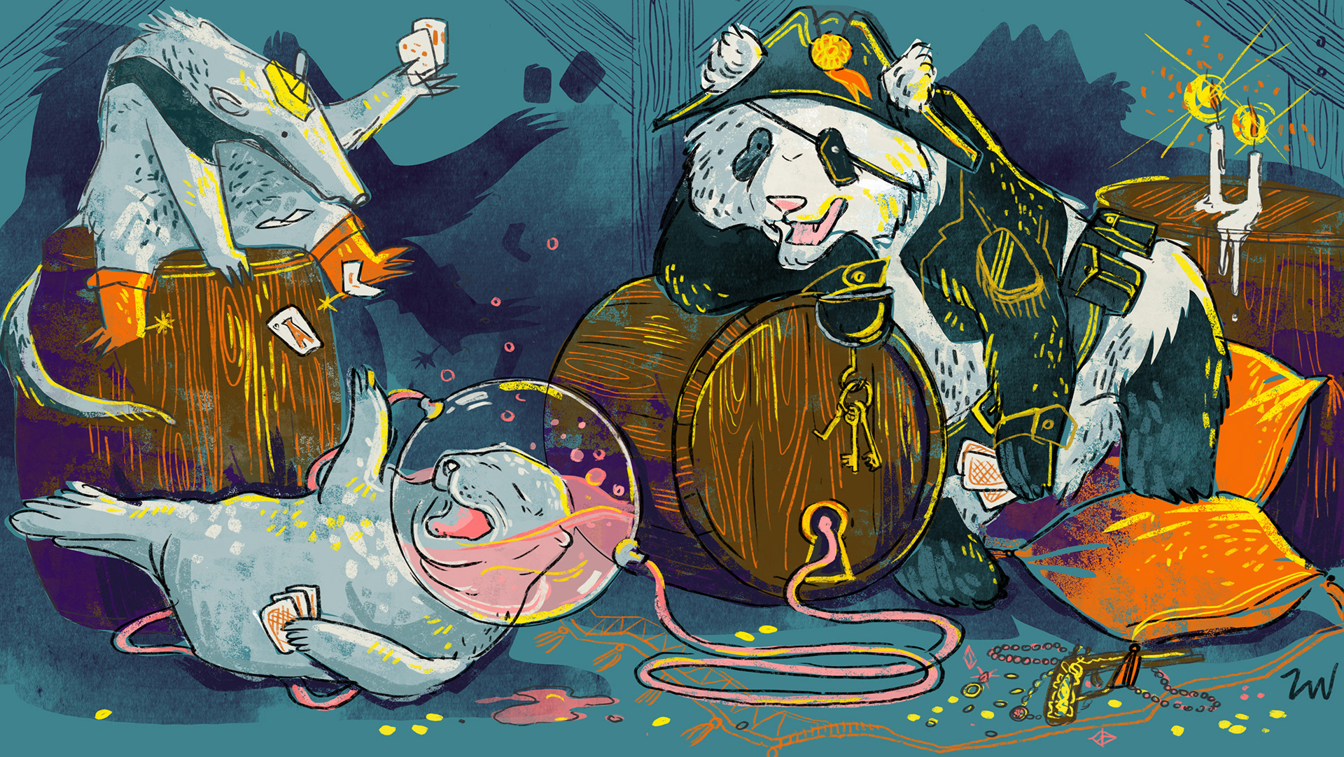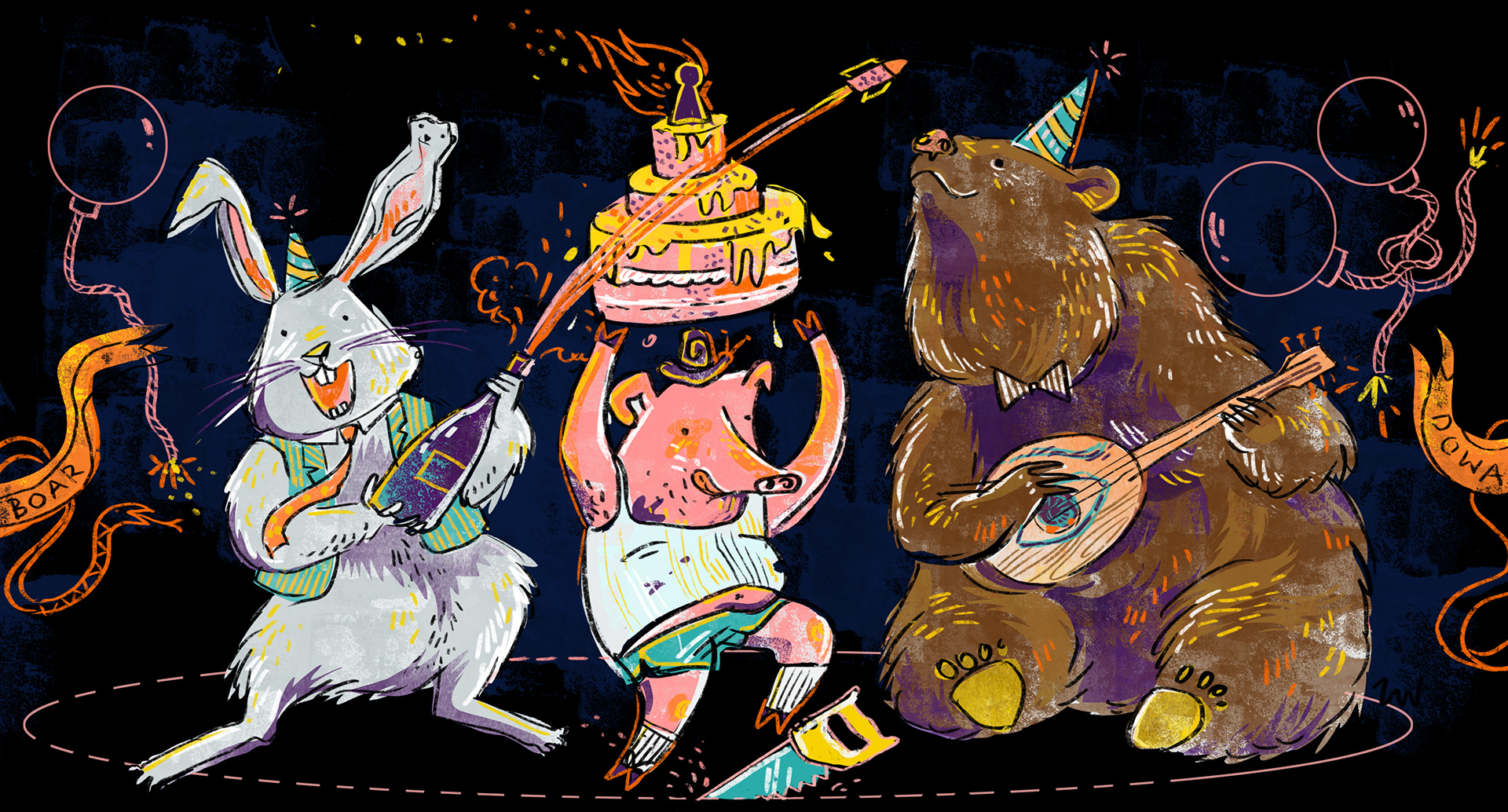 Set of illustrations for website and social media. Boardowa - place in Cracow where you can eat, drink and play board games.